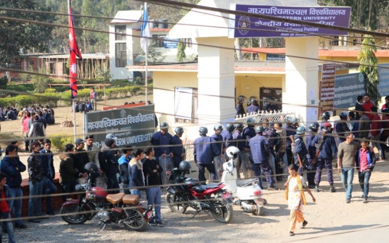 सप्तरी – मध्यपश्चिम विश्वविद्यालयका विद्यार्थीहरुले केन्द्रीय क्याम्पस अगाडी सोमवार विहानै प्रदर्शन गरेका छन्। प्रदर्शनका क्रममा केन्द्रिय क्याम्पसको अगाडी टायर बालेर प्रदर्शन गरेका हुन्। साथै प्रदर्शनमा उत्रेका विद्यार्थीले उपकुलपति प्रा. डाक्टर नन्दबहादुर सिंहका विरुद्ध नाराबाजी समेत गरेका छन्।