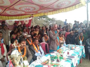 उहाले एउटा खेलाडिले गाउदेखि जिल्ला ,प्रदेश र देशकाे नाम समेत अगाडि बढाउने भएकाले यश वडाका युवाहरुका लागि खेलकुदकाे विकासका लागि चालू अावमा ५ लाख अार्थिक सहयाेग गर्ने प्रतिबद्धता समेत ब्यक्त गर्नुभएको छ । सदस्य समिमले खेलकुदलाई अगाडि बढाउनका लागि साे खेलकुद मेदानकाे बाउन्डि वालमा समेत अावश्यक पहल गर्ने विश्वास समेत ब्यक्त गर्नुभएको छ । वडाअध्यक्ष जिबछ दासकाे अध्यक्षता तथा गजेन्द्रनारायण सिह अस्पतालका हार्ड जाेर्नि तथा नशा राेग बिषेशज्ञ डा. ज्ञानेन्द्र झा र बिष्णुपुर गाउपालिकाका अध्यक्ष लिलाम्बर यादव विशिष्ट अातिथ्यमा अायाेजित साे क्रीकेट प्रतियोगिताकाे फाइनल खेलमा सखडा टिम र जमुवा टिमबिच भएको T 20 क्रीकेट प्रतियोगितामा टस जितेर ब्याटिङ गरेका जमुवा टिमले १६३ रनकाे टारगेट दिएको थियाे ।