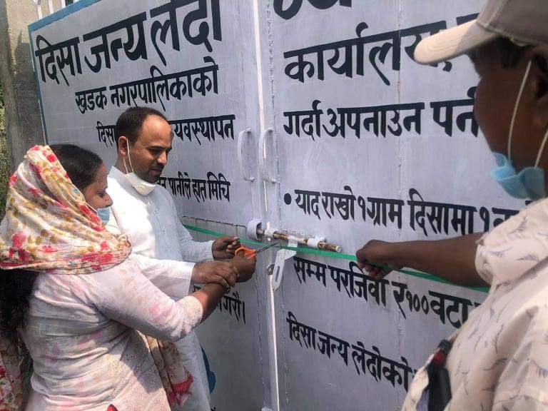 सप्तरी ,१७ असाेज । सप्तरीको खडक नगरपालीकाका नगर प्रमुख हेमायु हक तथा नगर उप प्रमुख याश्मिन सुल्तानद्धारा संयुक्तरुपमा सार्वजनिक शौचालय तथा दिसा जन्य लेदा व्यवस्थापनका लागि बनाइएको ट्रेन्च उदघाटन गरीएकाे छ । खडक नगरपालिका वडा न.७ का वडाअध्यक्ष राकेश कुमार साहको अध्यक्षतामा संचालन भएको साे कार्यक्रममा प्रमुख अतिथीकोरुपमा नगर प्रमुख हेमायु हक रहेका थिए भने विशिष्ट अतिथीकोरुपमा नगर उपप्रमुख याश्मिन सुल्तान यसै गर प्रमुख प्रशासकिय अधिकृत महिनारायण चौधरी, एसएनभि नेपालको वास एडभाईजर कृष्ण जिसि, स्वास्थय समन्वय प्रमुख जयकान्त पण्डित, कार्यपालीका सदसय अरहुलीया देवी मण्डल, महुली समुदाय विकास केन्द्रका अध्यक्ष प्रभुनारायण चौधरी, सबल नेपालका कार्यक्रम संयोजक परमेश्वर झा लगायतका सहभागितारहेको थियो । उक्त अवसरमा शौचालय निर्माण गरेको संस्था महुली सामुदायीक विकास केन्द्रका अध्यक्षले प्रतिवेदन प्रस्तुत गर्दै सार्वजनिक शौचालयको महत्व तथा उद्देश्यबारे एसएनभि नेपालका कृष्ण जिसिले मन्तवय राखेका थिए । परमेश्वर झाद्धारा संचालन गरीएको उक्त कार्यक्रममा नगर प्रमुख तथा उपप्रमुखद्धारा संयुक्तरुपमा रिवन काटी शौचालयको उदघाटन गरीएका हुन ।