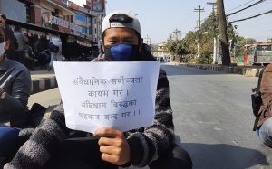 Saptari – Civil society has protested against the dissolution of the House of Representatives. The demonstration was held at Maitighar in Kathmandu. In the performance, Dr. Govinda KC, writer and journalist Narayan Wagle, writer Yug Pathak, advocate Omprakash Aryal and others were present.