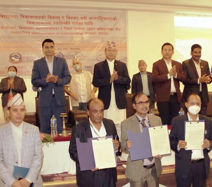 संस्कृति, पर्यटन तथा नागरिक उड्डयनमन्त्री योगेश भट्टराई र प्रदेश १ का मुख्यमन्त्री शेरधन राईको उपस्थितिमा विराटनगरमा समझदारीपत्रमा हस्ताक्षर भएको छ । समझदारीपत्रमा प्रदेश सरकारका तर्फबाट उद्योग, पर्यटन, वन तथा वातावरण मन्त्रालयका सचिव मेघराज काफ्ले, विराटनगर महानगरपालिकाका तर्फबाट महानगरका प्रमुख प्रशासकीय अधिकृत ईन्द्रमणि पोखरेल र नागरिक उडड्यन प्राधिकरणका तर्फबाट महानिर्देशक राजन पोखरेलले हस्ताक्षर गरेका छन ।