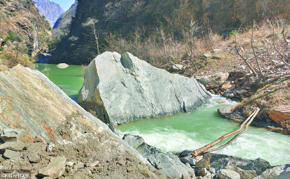 ठूला चट्टान खसेर केही थुनिएको बहाव क्षेत्र सहज नबनाए आउँदो वर्षात्मा बाढी र कटानको जोखिम हुने भन्दै नदीमा थुप्रिएका ढुंगा भारतले फुटाउन सुरु गरेको जिल्ला प्रशासन कार्यालय दार्चुलाले जनाएको छ । थुनिएको क्षेत्रलाई खोल्ने बहानामा भारतले नेपालतर्फ पनि ढुंगा फुटाउन विस्फोटक पदार्थ प्रयोग गर्ने तयारी गरेको पाइएको छ । उक्त क्षेत्र व्यास गाउँपालिका–२ माल्पा घाटीबगरमा पर्छ ।दार्चुलाका प्रमुख जिल्ला अधिकारी शरदकुमार पोखरेलका अनुसार वर्षात्मा कैलाश मानसरोवर जाने मार्ग निर्माणका क्रममा चट्टान खसेर महाकालीमा थुप्रिएको थियो । त्यसलाई अहिले हिउँदमा नदीमा पानीको मात्रा घट्ने समयमा पन्छाउन सुरु गरेको बुझिए पनि लिखित रूपमा त्यसबारे कुनै जानकारी प्राप्त नभएको उनले बताए । ‘भारतीय कम्पनीले नदीमा थुपारिएका ढुंगा–माटो पन्छाउन सुरु गरेको नजिकको प्रहरी चौकीबाट जानकारीमा आएको छ,’ उनले भने, ‘नदी अहिले थुनिएको होइन । भारतले सडक बनाउँदा नदीमा खसेको चट्टान खोलिरहेको हो ।’मंगलबार दिउँसो जिल्ला प्रशासन कार्यालय कञ्चनपुरले माल्पा क्षेत्रमा महाकाली थुनिएको खबर आएकाले तटीय क्षेत्रका बासिन्दालाई सुरक्षित रहन सूचना जारी गरेको थियो । मंगलबार नै त्यहाँ नजिकको प्रहरी चौकी र सशस्त्र प्रहरीको टोली पुगेर फर्केको छ । टोलीले तटीय क्षेत्रको ठूलो जोखिम नरहेको बताएको प्रजिअ पोखरेलले सुनाए ।व्यासको दुम्लिङ प्रहरी चौकीका इन्चार्ज असई प्रकाशबहादुर सिंहका अनुसार भारतले उक्त क्षेत्रमा पहिरोभन्दा नदीको बीच भागमा थुप्रिएका ढुंगा फोर्ने काम गरिरहेको छ । त्यस क्रममा महाकाली नदीवारि (नेपालतर्फका) पनि ढुंगा फोर्न विस्फोट गर्ने प्वाल पारेको सिंहले बताए । भारतले उक्त क्षेत्रमा चट्टान फोर्न सोमबारबाट विस्फोटक पदार्थ प्रयोग सुरु गरेको छ । ‘त्यसक्रममै नेपालतर्फका पनि ठूला ढुंगामा प्वाल पारेको र विस्फोटक पदार्थ पड्काउन तार बिछ्याएको भेटियो,’ उनले भने, ‘बिछ्याएको तार निकालेको र आफ्नो क्षेत्रमा मात्रै काम गर्नू भनेर फर्कियौं ।’ प्रहरी चौकीबाट ७/८ घण्टा पैदल दूरीमा रहेको उक्त क्षेत्रमा दिनहुँ गस्तीमा जान सक्ने अवस्था नभएको उनले बताए । ‘केही दिन बिराएर जाने गरेका छौं,’ उनले भने ।