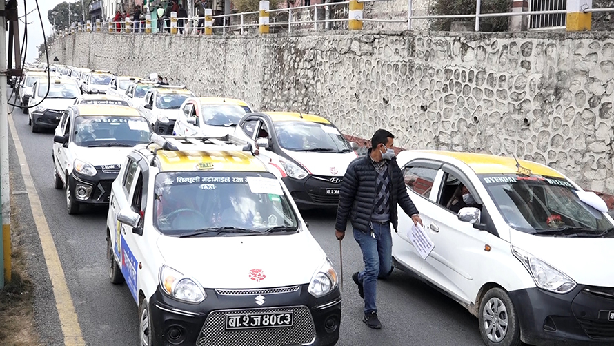 काठमाडौं । काठमाडौं उपत्यकाका ट्याक्सी चालक तथा व्यवसायी आन्दोलित भएका छन् । शनिवार आफ्ना ट्याक्सीसहित र्याली निकाल्दै व्यवसायीहरुले सरकारसँग वैज्ञानिक भाडादर कायम गर्नुपर्नेसहित विभिन्न माग गरेका छन् ।