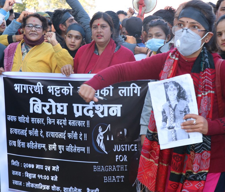 Baitadi: Demonstrations have taken place in Baitadi on Sunday demanding justice for Bhagarathi Bhatt, 17, of Chadepani in Dogadakedar village municipality-7 of Baitadi.