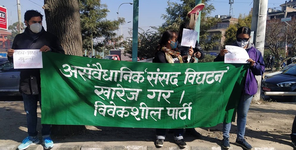 प्रधानमन्त्री केपी शर्मा ओलीले गत पुस ५ गते प्रतिनिधि सभा विघटन गरेको विरोधमा विवेकशीलले निरन्तर सडक संघर्ष गर्दै आएको छ। उनीहरुले प्रतिनिधि सभा विघटनको कदम खारेज हुनुपर्ने माग गर्दै आएका छन्। यता विघटनको विरुद्धको मुद्दाको सुनुवाई सर्वोच्च अदालतको संवैधानिक इजलासमा जारी रहेको छ।