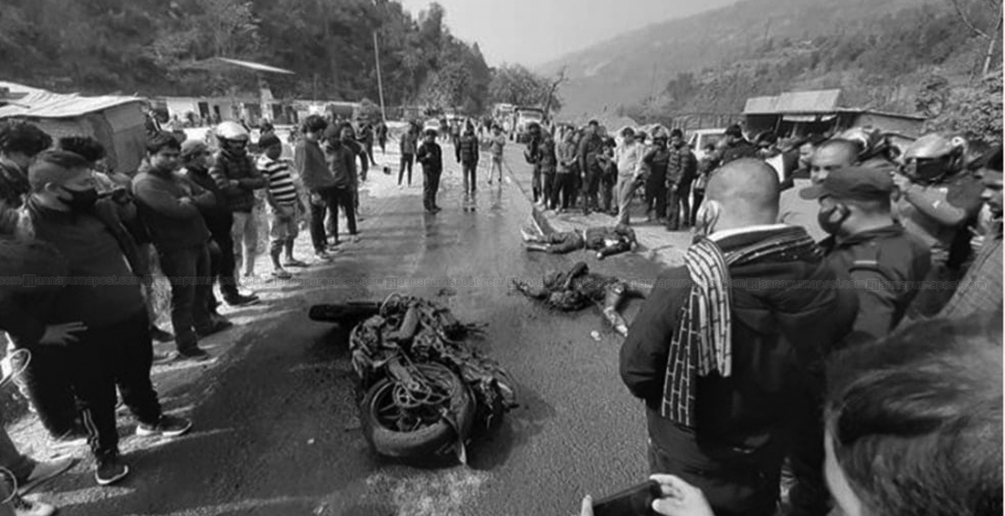 सप्तरी – पृथ्वीराजमार्गअन्तर्गत धादिङको थाक्रे गाउँपालिकामा मोटरसाइकल र ट्रक एक ठक्कर खाएर भएको आगलागीमा दुईजनाको मृत्यु भएको छ। थाक्रेको वडा नम्बर ८ को चार किलास्थित एभरेष्ट पम्प नजिकै ट्रक र मोटरसाइकल जुधेका थिए। लगत्तै आगो लाग्दा मोटरसाइकमा सवार दुईजनाको जलेर मृत्यु भएको छ।