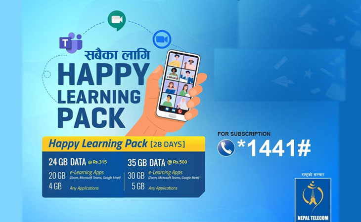 यसअघि कम्पनीले कोभिड १९ को महामारीको समयमा विद्यार्थीहरुको पठनपाठनमा सघाउ पुर्याउने उद्देश्यका साथ यो नयाँ प्याक ल्याएको थियो ।विद्यालय र विश्वविद्यालयको अनलाइन पठनपाठनमा सहयोग पुर्याउने उद्देश्यका साथ सस्तो मूल्यमा कम्पनीले यो प्याकेज उपलब्ध गराएको थियो । यसअन्तर्गत ३१५ रुपैयाँमा २४ जीबी र ५०० रुपैयाँमा ३५ जीबी डेटा उपलब्ध हुने टेलिकमले जनाएको छ ।२४ जीबी डेटामध्ये २० जीबी डेटा जुम, माइक्रोसफ्ट टिम्स र गुगल मिटमा ईलर्निङ एप्लिकेसन प्रयोग गर्नका लागि र बाँकी ४ जीबी डेटा अन्य कुनैपनि एप्लिकेसनमा प्रयोग गर्न सकिनेछ ।