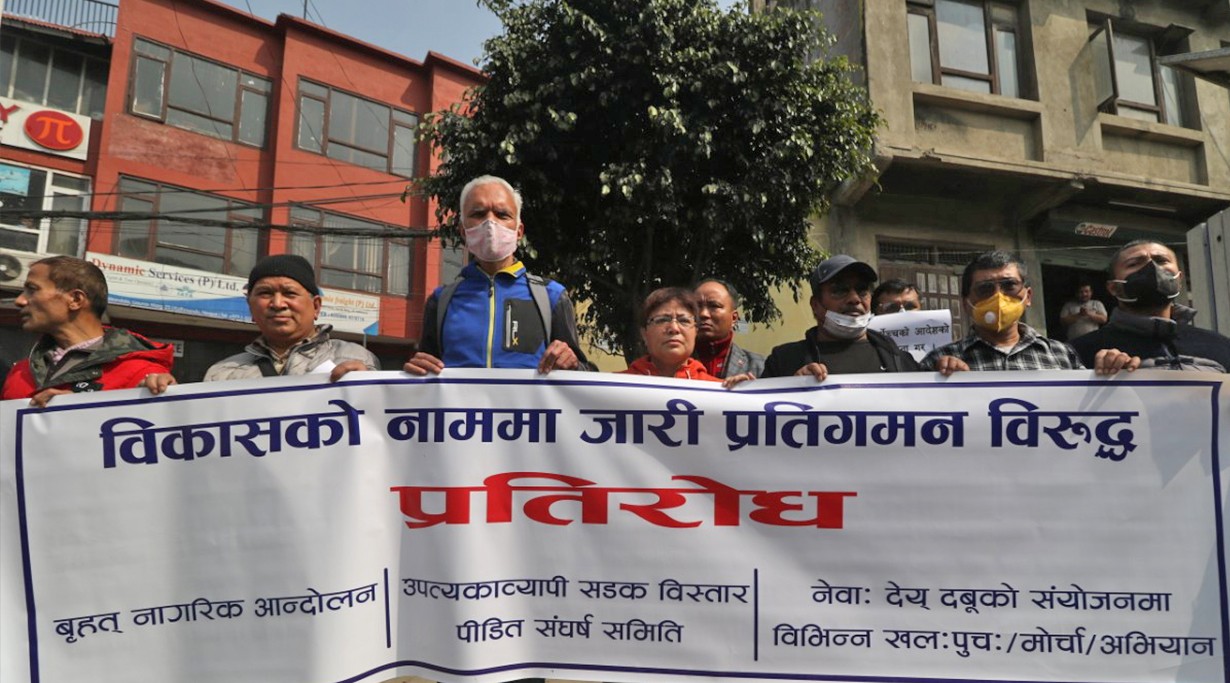 बालाजु सडक विस्तार र कमलपोखरीमा कंक्रिटयुक्त संरचना बनाएको विरोधमा कवि, लेखक तथा संरक्षणकर्मीहरुले आज बिहान माइतीघर मण्डलामा भेला भएर प्रदर्शन गरेका हुन् ।प्रदर्शनमा राजेन्द्र महर्जन, विद्या श्रेष्ठ, नारायण वाग्ले लगायत सहभागी थिए । अन्य व्यक्तिहरु परम्परागत नेवारी भेषभुषा र बाजागाजासहित प्रदर्शन सहभागी थिए । अभियानकर्मीहरुले ‘विकासको नाममा प्रतिगमन’ लेखिएको ब्यानर बोकेका थिए ।उनीहरुले बालाजु सडक विस्तारको विरोध गर्नेहरुमध्ये विरोचन श्रेष्ठ र सुमन सायमीलाई प्रहरीले नियन्त्रणमा लिएकाले उनीहरुलाई तत्काल रिहाइको माग गरे ।