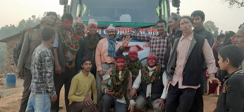 अर्घाखाँची – अर्घाखाँचीको भूमिकास्थान नगरपालिका-१ साम्नेगाउँमा पहिलो पटक बस पुगेपछि स्थानीयवासीले पञ्चेबाजा बजाएर नाचगान गरेका छन् ।