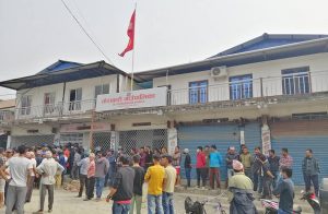 गाउँपालिका घेराउ गर्न आएका स्थानीयवासी ।