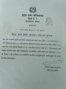 मोरङ – प्रदेश १ सभाको बिहीबार बोलाइएको बैठक चैत २ गतेसम्मका लागि स्थगित गरिएको छ ।