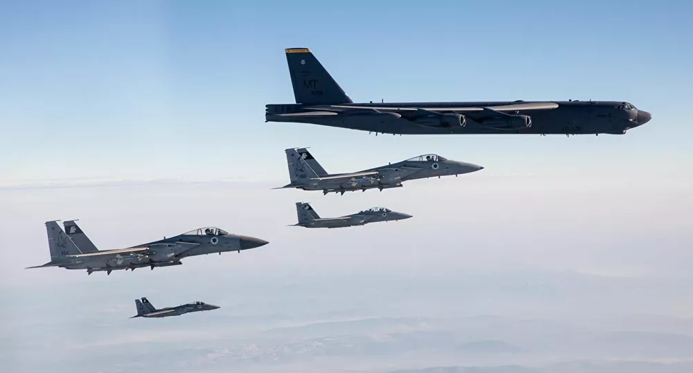 इजरायलका एफ–१५ लडाकू विमानहरूले आफ्नो हवाईक्षेत्रमा अमेरिकाका दुईवटा बी–५२ बमवर्षक विमानलाई उडानमा साथ दिएको इजरायलका रक्षा बलहरूले एक ट्वीटमार्फत जानकारी दिएका छन् ।