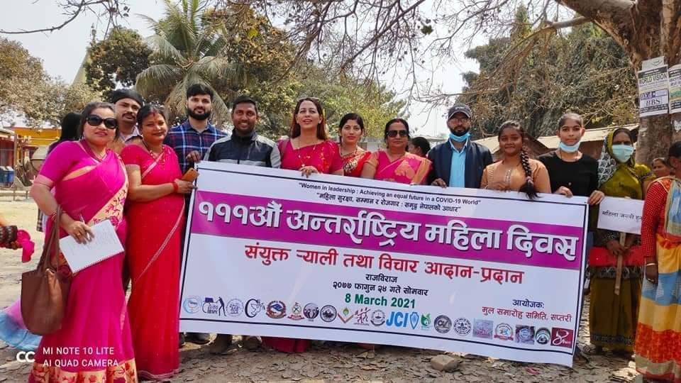 ” महिला सुरक्षा, सम्मान र रोजगार : समृद्ध नेपालको अाधार”भन्ने मुल नाराका साथ अाजे जिल्लाकाे विभिन्न स्थानमा विविध कार्यक्रमहरु अायाेजना गरि मनाइएको छ । साेहि अवसरमा राजविराज मुल समाराेह समितिकाे अायाेजनामा जिल्ला समन्वय समितिकाे सभाहलमा अायाेजित कार्यक्रममा सहभागिहरुले महिलामाथि हुने हिसालाइ न्युनिकरण गर्नका लागि सबै महिलाहरूलाइ एक जुट हुनुपर्नेमा जाेड दिएका छन । एकल महिला समुहकि अनिता देवकाेटाकाे अध्यक्ष्ाता तथा दहेज मुक्त अभियानकि करुणा झाकाे प्रमुख अातिथ्यमा अायाेजित कार्यक्रममा पुनम पाेखरेल , अम्बिका दाहाल ,सुधा देव ,शकर सारदा , चन्दकला चाेधरि ,डा. रन्जना गिरि ,सुरेन्द्र गुप्ता ,हेमशकर सिह ,धिरेन्द साह ,डाेमन साह ,जिल्ला प्रहरी कार्यालय सप्तरीका डिएसपि भुवनेश्वर साह ,हित नारायण लाल दास ,मनाेहर पाेखरेल लगायतकाहरुले अा अाफनाे विचार राखेका थिए ।