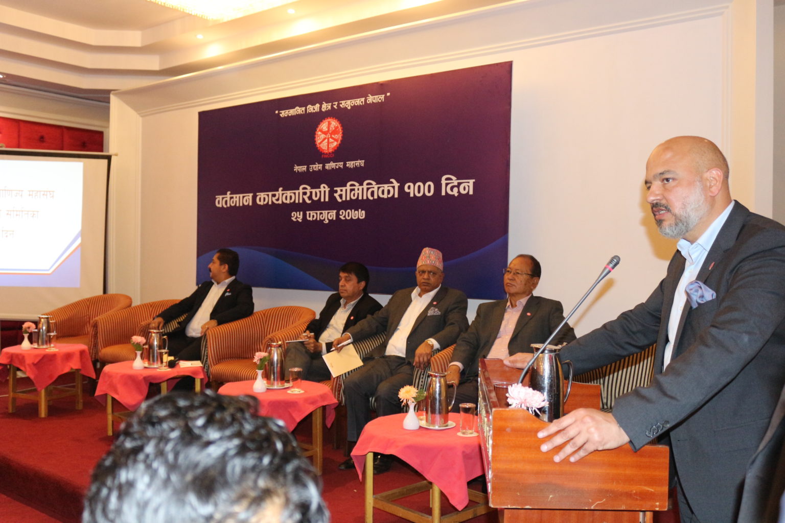 नेपाल उद्योग वाणिज्य महासंघले आउँदो चैतभित्रै आर्थिक विकाससम्बन्धी भिजन पेपर ल्याउने भएको छ । गत मंसिर १५ गते कार्यभार सम्हालेको महासंघको नयाँ कार्यसमितिले सय दिन पूरा गरेको अवसरमा मंगलबार आयोजित कार्यक्रममा अध्यक्ष शेखर गोल्छाले भिजन पेपरका लागि गृहकार्य भइरहेको जानकारी दिए ।
