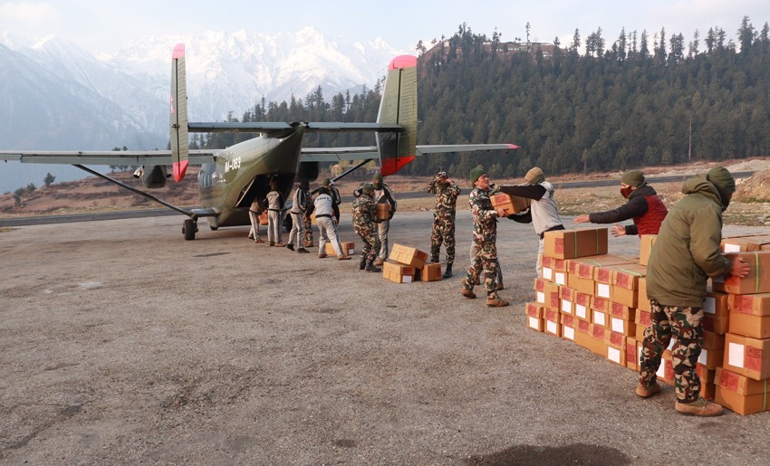 ३० हजार केजी जिलेटिन सेनाको जहाजले दुई फ्लाईट गरेर सिमकोट ओसारेको हो।