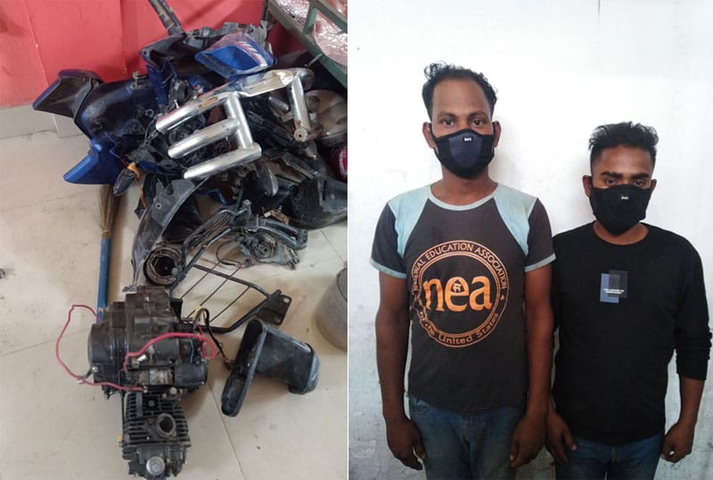 पक्राउ पर्नेमा वीरगञ्ज महानगरपालिका वडा नम्बर ३० बस्ने २२ वर्षीय महम्मद नुरउल्लाह देवान र सोही स्थानका २८ वर्षीय राजेश सहनी रहेका छन्।वीरगञ्ज ३० स्थित बगहीदेखि परवानीपुरतर्फ जाने सडकखण्डमा अमेरिका सहनीको मोटरसाइकल ग्यारेजमा शंका लागि चेकजाँच गर्दा चोरी गरी ल्याइएका मोटरसाइकलका पाटपुर्जाहरु प्रहरीले बरामद गरेको थियो।प्रारम्भिक अनुसन्धानको क्रममा उक्त मोटरसाइकलका पार्टसहरु चोरी गरी ल्याएको खुल्न आएको पर्साका प्रहरी प्रवक्ता ओम प्रकाश खनालले जानकारी दिए।