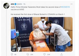 मार्च १ मा पहिलो डोजको कोभ्याक्सिन लगाएका मोदीले दोस्रो डोजको लगाएका हुन् । उनले दोस्रो डोजको खोप लगाएको भारतिय मिडियाले जनाएका छन् । भारतमा बायोटेकले बनाएको कोभ्याक्सीन र अक्सफोर्ड विश्वविद्यालयसँग एस्ट्राजेनेका कम्पनीले बनाएको कोभिशिल्ड प्रयोग गरिएको छ ।