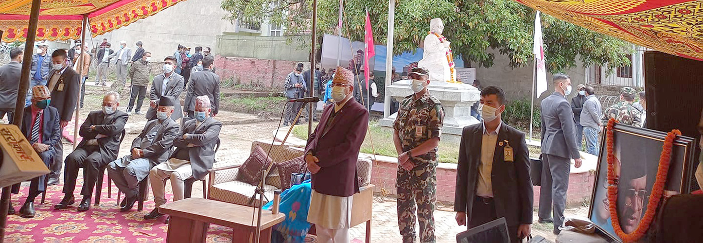 बिहीबार बिहान भवनको शिलान्यसपछि आयोजित कार्यक्रमलाई उनले सम्बोधन गरेका थिए ।भूकम्पले बल्खुको पार्टी कार्यालय ध्वस्त बनाएपछि धुम्बाराहीमा कार्यालय सारिएको थियो ।