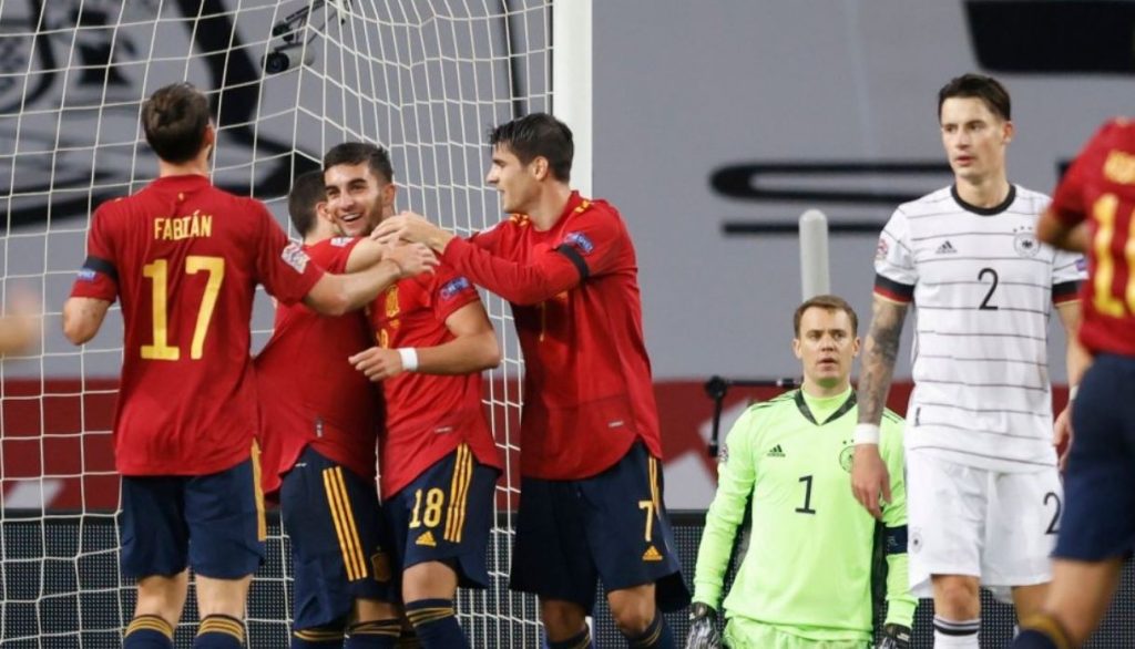 लिग अन्तर्गत समूह ए४ को अन्तिम खेलमा स्पेनले जर्मनीमाथि ६-० को शानदार जित हात पारेको छ ।