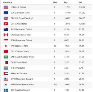 त्यस्तै अमेरिकी डलर एकको खरिददर ११७ रुपैयाँ ७२ पैसा र बिक्रीदर ११८ रुपैयाँ ३२ पैसा रहेको छ ।
