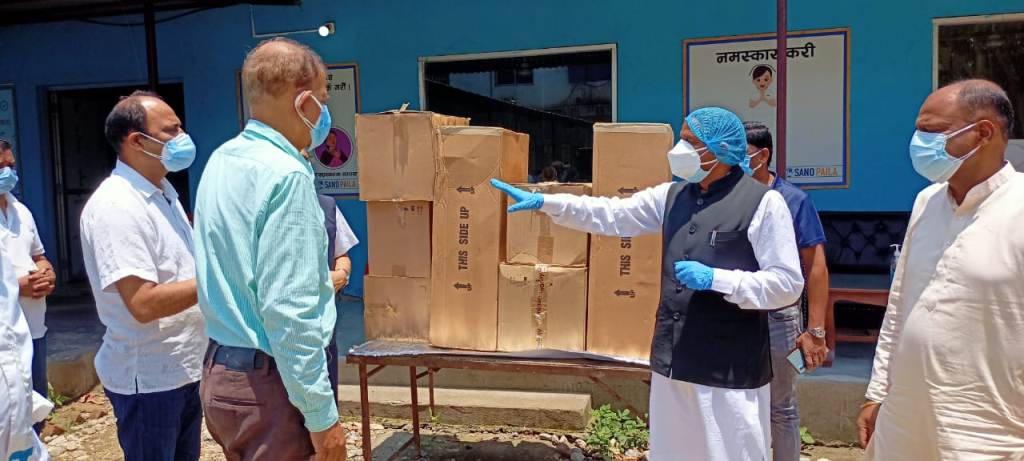 नारायणी अस्पताल परिसरमा आयोजित कार्यक्रममा मेडिकल सुपरिटेन्डेन्ट डा. सन्जय ठाकुरलाई मुख्यमन्त्री लालबाबु राउतले २० लाखको चेक र भेन्टिलेटर उपकरण सेट प्रदान गरे।