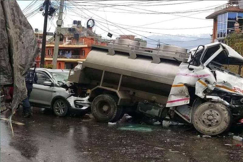 विपरीत दिशाबाट आएको प्रदेश १ -२-००१ क ४०० दूध नम्बरकाे दूध बोक्ने गाडी र प्रदेश ३-०१-००३ क ७७४३ नम्बरकाे ट्रकसँग बिहान ७ बजे ठोक्किएको महानगरीय प्रहरी परिसर भक्तपुरका डिएसपी दीपक गिरीले जानकारी दिए।