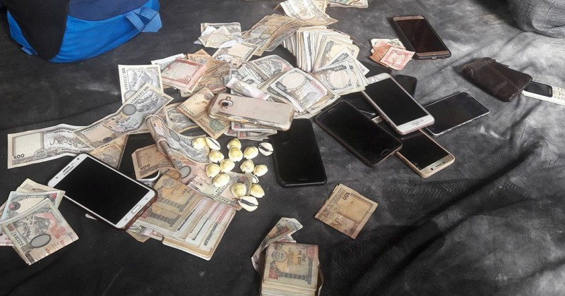 उनीहरूको साथबाट कौडा १६ थान, एक बुङ तास, मोबाइल १६ थान, मोटरसाइकल १९ वटा र दुई वटा कार बरामद भएको खड्काले बताए।पक्राउ पर्नेमा रतुवामाई नगरपालिका-७ डिल्लीराम चौलागाईं, मोती पौडेल, रामनाथ मैनाली, देवीप्रसाद प्रसाईं, रामनाथ नेपाल, हेमलाल प्रसाईं, नारायण चुँडाल रहेका छन्।