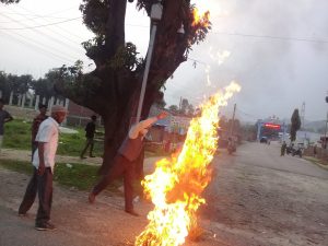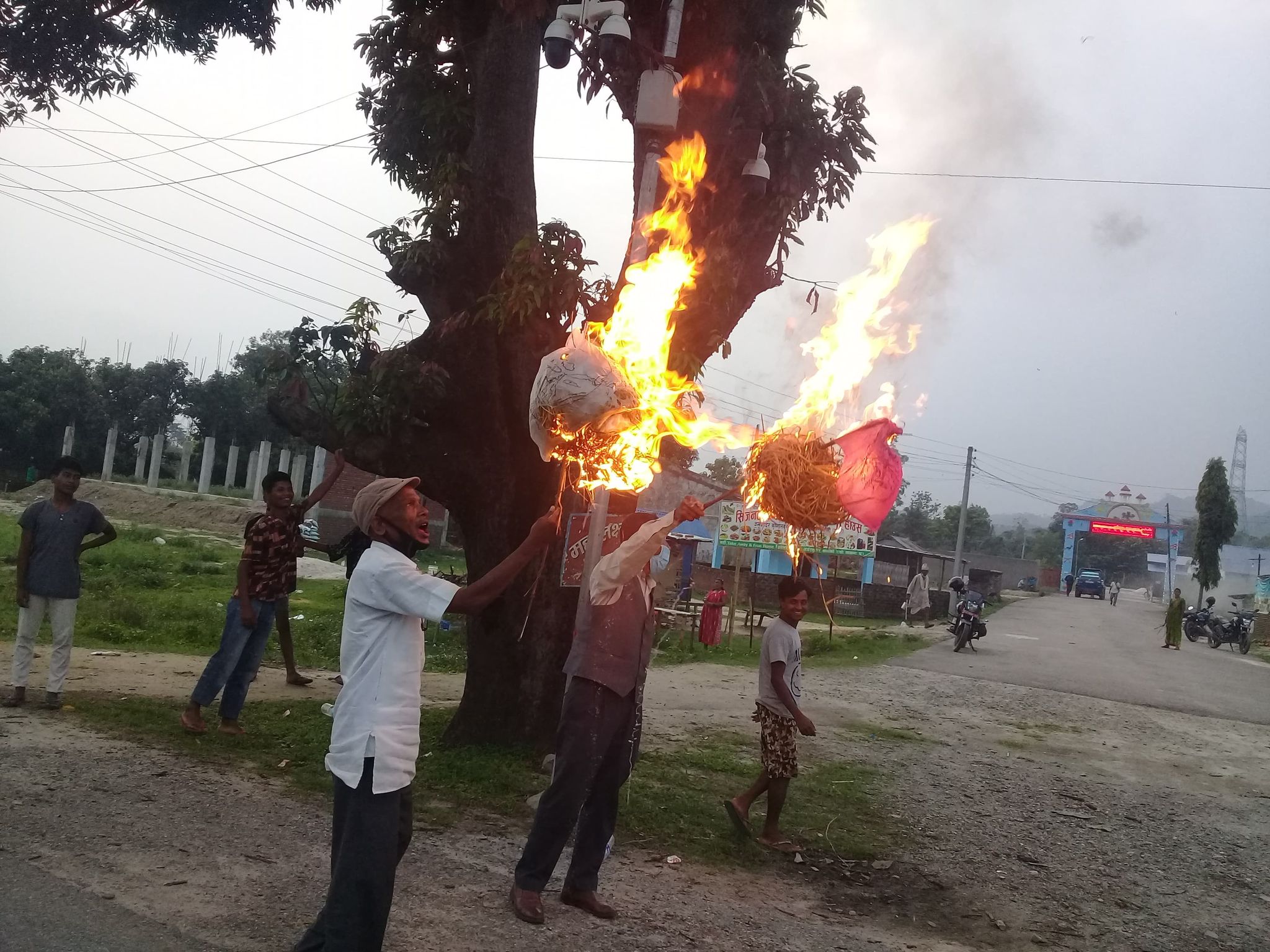 प्रतिनिधि सभाको पुनर्स्थापनाको माग गर्दै विपक्षी गठबन्धनका नेताकार्यकर्ताले राष्ट्रपति र प्रधानमन्त्रीको पुतला दहन गरेका हुन । जसपाका गाउँपालिका अध्यक्ष रामदेव यादव र नेकपा माओबादी केन्द्रका जिल्ला सदस्य एबम गाउँपालिका अध्यक्ष बेचेन प्रसाद चौधरी नेतृत्वको विपक्षी गठबन्धनका नेताकार्यकर्ताले राष्ट्रपति र प्रधानमन्त्री विरुद्ध चर्कानाराबाजी गर्दै पुतला दहन गरे । गाउँपालिकाको कार्यालय अगाडि राष्ट्रपति र प्रधानमन्त्रीको पुतला दहन गदै नेताहरूले साँसद पुनर्स्थापना नभए सशक्त आन्दोलन गर्ने चेतावनी दिए । प्रधानमन्त्री ओलिको सिफारिसमा राष्ट्रपति भण्डारीले गत जेठ ७ गते मध्यरातमा साँसद विघटन गरेपछि प्रतिगामी कदमको बिरोध गर्दै विपक्षी गठबन्धनले कानुनी र सडक आन्दोलन गर्दै आएको छ ।