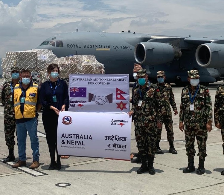 आज ल्याईएका १८ लाख अष्ट्रेलियाली डलर मूल्यका सामाग्रीहरु नेपाली सेनाको अनुरोध अनुरुप वेस्टर्न अष्ट्रेलिया सरकारले प्रदान गरेको सर्जीकल मास्क, फेश शील्ड र पञ्जाहरु रहेका छन् । यो सहयोग नेपालमा कार्यरत गैह्रसरकारी संस्थाहरु मार्फत अस्पतालहरुका लागि अक्सिजन र स्वास्थ्य सामाग्री र स्वास्थ्यकर्मीहरु लाई प्रदान गरिने तालीमाका लागि गत मे २१ मा घोषित ७० लाख अष्ट्रेलियाली डलर बाहेकको थप सहयोग हो।