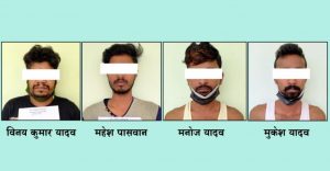 सप्तरीको रुपनी गाउपालीका वडा न.५ का ३० वर्षीय बिनय कुमार यादव, ३० वर्षीय मनोज कुमार यादव, २४ वर्षीय मुकेश कुमार यादव ३१ वर्षीय महेश कुमार पासवान सप्तरी जिल्ला अदालतको आदेशमा जेल चलान गरिएको हाे।उनीहरुलाई सप्तरी कारागार चलान गरिएको जिल्ला प्रहरी कार्यालय सप्तरीका डिएसपि एव प्रबक्ता प्रहरी नायव उपरीक्षक माधव प्रसाद काफ्लेले जानकारी दिनुभयाे ।