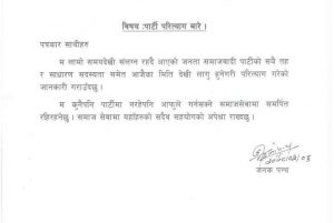 गुल्मी – जनता समाजबादी पार्टीका जिल्ला सचिव जनक पन्थले पार्टी परित्याग गरेको घोषणा गरेका छन्।