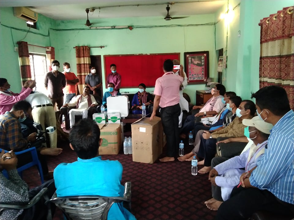 कोरोना महामारीको तेस्रो भेरिऐन्ट बाट जोगाउन ९ थान अक्सिजन कन्सटेक्टर मेसिन र ७० काटुर्न केएन ९५ मास्क लगायतका स्वास्थ्य सामग्रीह शनिवार अस्पतालका मेडिकल सुपरिडेन्टेन्ट डाक्टर रणजित झा लाई हस्तान्तरण गर्नु भएको छ ।
