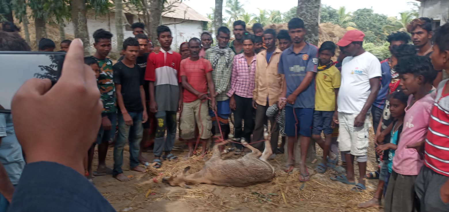 रंगेली नगरपालिका वडा नम्वर ३ दौलतपुरममा शिव कुमार मण्डलको पोखरी छेउमा आएकोभाले हरिण नियन्त्रणमा लिएको हो।