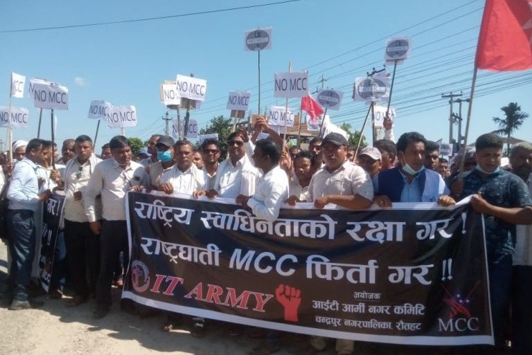 रौतहट – आईटी आर्मीले एमसीसी सम्झौता खारेजीको माग गर्दै रौतहटको चन्द्रपुरमा प्रदर्शन गरेको छ ।मिलिनियम च्यालेन्ज कर्पोरेसन (एमसीसी) सम्झौता राष्ट्रघाती भएको भन्दै कुनै पनि हालतमा संसदबाट पास गर्न नहुने भन्दै शुक्रबार नाराबाजीसहित आईटी आर्मीले विशाल प्रदर्शन गरेको हो ।