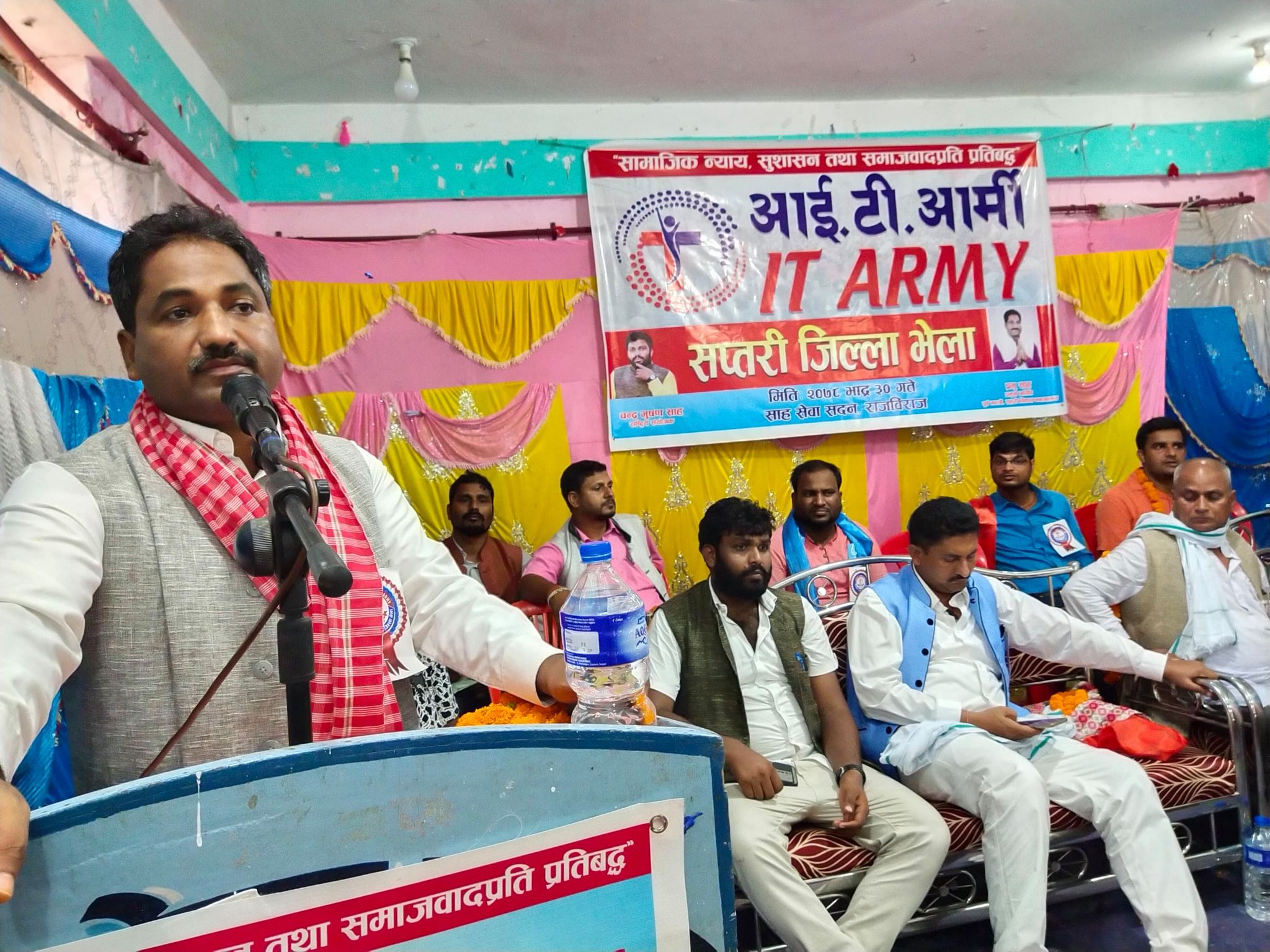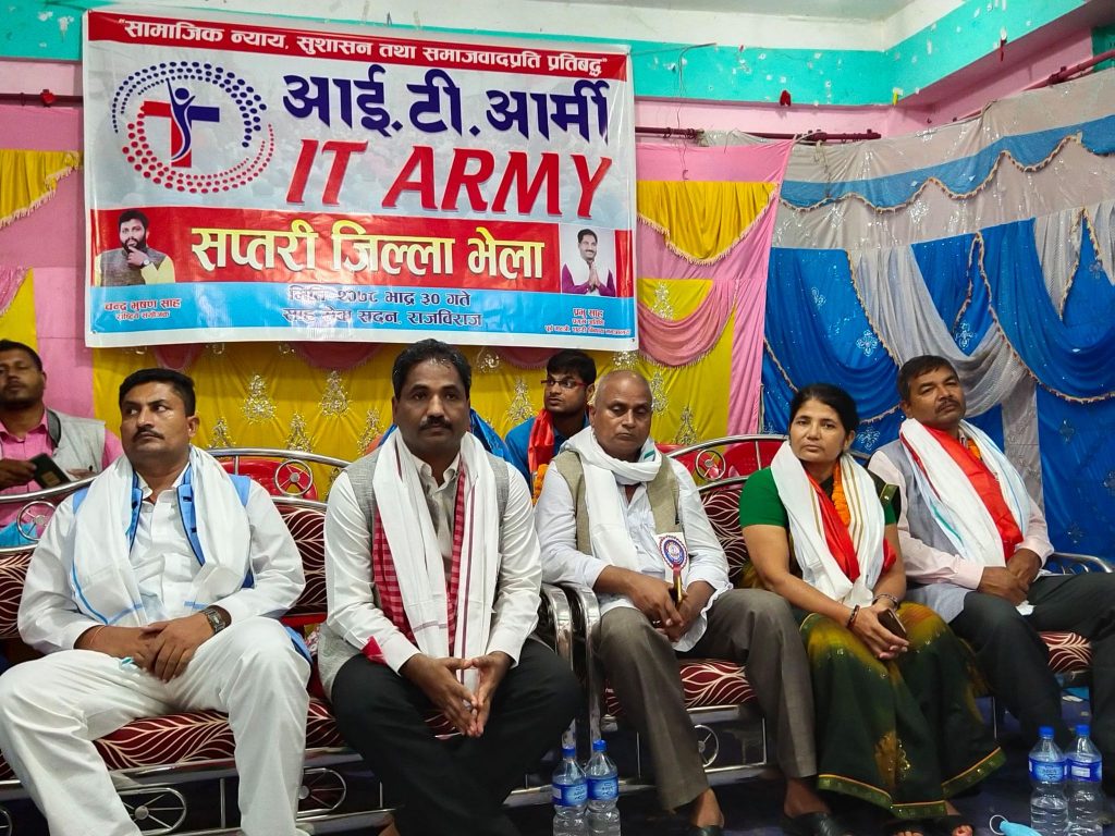 कार्यक्रममा इस्लाम हवारी, सिरया यादव, कुन्दन कुश्वाहा, श्रीलाल यादव, प्रभात महतो लगायतले आ–आफ्नो विचार राखेका थिए । उक्त कार्यक्रमा दिलिप कुमार साहको अध्यक्षतामा कार्यक्रम सम्पन्न भएको थियो ।आईटी आर्मीको सप्तरी संयोजक दिलिप कुमार साहको नेतृत्वमा १ सय ५१ जिल्ला कार्यसमिति गठन गरिएको छ ।