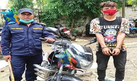 जिल्ला प्रहरी कार्यालय रौतहटबाट खटिएको प्रहरी टोलीले रौतहटको गौर नगरपालिका वडा नम्बर ३ वि.पी.चोक स्थित ना.५२ प-१५९८ नम्बरको पल्सर मोटरसाईकल टिकुलीया पेट्रोल पम्प नजिकबाट चोरी गरी ल्याउदै गरेको अवस्थामा मोटरसाइकल सहित एक जना लाई पक्राउ गरिएको हो ।