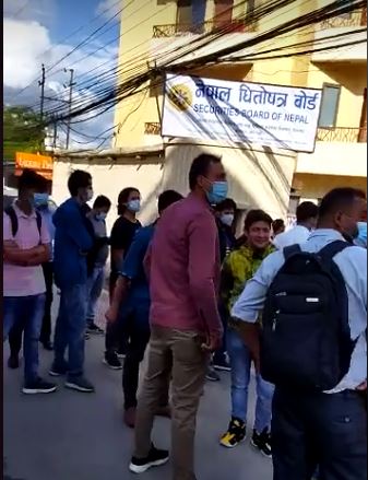 काठमाडौं – पुँजीबजार सुधार संघर्ष समितीको आयोजनामा लगानीकर्ताहरुले नियामक निकाय नेपाल धितोपत्र बोर्ड घेराउ गरेका छन् । उनीहरुले आज मंगलबार दिउँसो ३ बजेदेखि धितोपत्रमा बोर्डमा गएर खबरदारी गरिरहेका छन् । लगानीकर्ताहरुले पुँजी बजार सुधारको लागि विभिन्न प्रकारका माग राखेर आन्दोलन गर्दै आइरहेका छन् । सोही अन्तर्गत आज उनीहरुले धितोपत्र बोर्ड घेराउ गरेको अन्दोलनरत लगानीकर्ता राजसिंह भन्डारी (काजीसाब) ले बताए ।