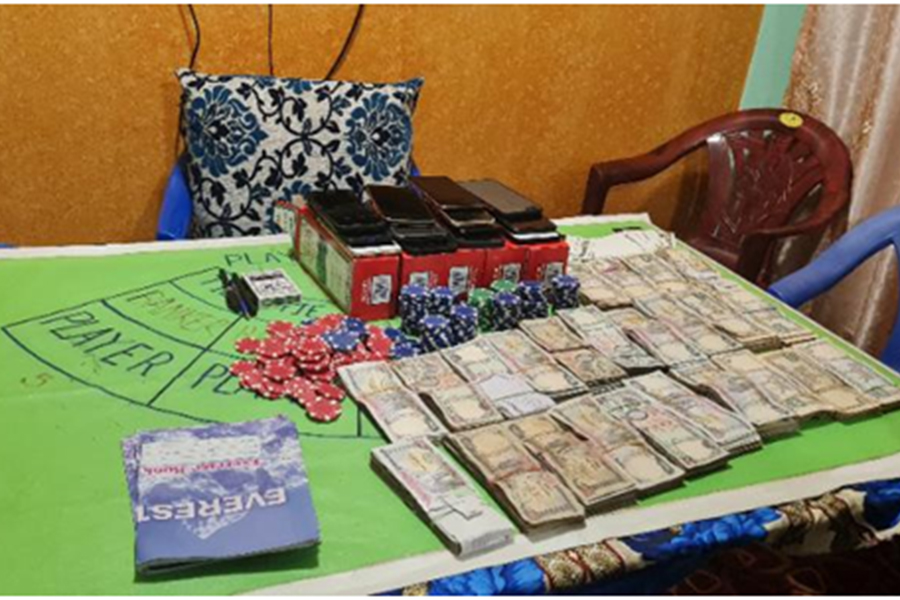 हरहरमहादेवस्थित कमल दाहालको घरबाट जुवा खेलिरहेको अवस्थामा प्रहरी प्रभाव काँडाघारीको टोलीले बुधबार राति साढे १२ बजे उनीहरूलाई नियन्त्रणमा लिएको हो । पक्राउ पर्नेमा केही महिला पनि रहेका छन् । पक्राउ परेकाहरूको साथबाट १८ लाख ७५ हजार ५०० नगद र ७ जोर तास बरामद गरिएको प्रहरीले जनाएको छ । साथै उनीहरूबाट प्रति क्वाइन दश हजार ‘भ्यालु’ रहेका ४० वटा ग्रिन क्वाइन, ५०० भ्यालु भएका ८० वटा रेड क्वाइन र एक हजार भ्यालु भएका १४० वटा ब्ल्यु क्वाइन पनि बरामद भएको छ ।