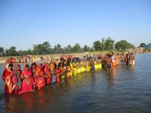 सप्तरी – प्रत्येक वर्षजस्तै यस वर्ष कमला नदीको दृश्य रोमाञ्चक बनेको छ । पहेँलो धोती र साडीमा सजिएका धामी–झाँक्रीहरु हातमा बलेको आगोसहितको माटोको ढकना (भाडा) र बेतको लाठी घुमाउँदै कर्कश स्वरमा चिच्यउँदै यहाँ आउने गर्दछन् ।
