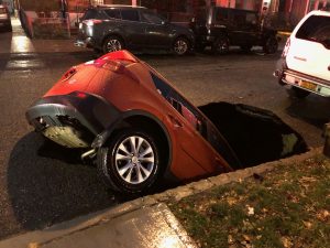 न्युयोर्क सिटी काउन्सिलकी सदस्य रोबर्ट होल्डनले तस्वीर शेयर गरेका हुन् । पार्किङ गरिरहेको कार सिंकहोलमा खसेको हो । त्यसको अघिल्लो भाग खाल्डोमा पसेको हो । पछि प्रहरी र उद्धारकर्मीहरू आए अनि कारलाई बाहिर निकाले ।
