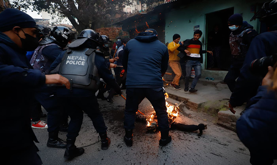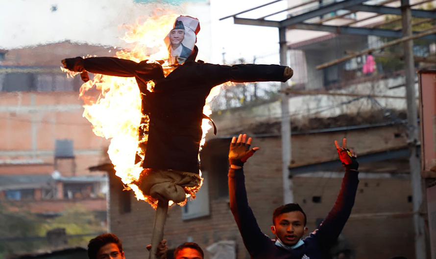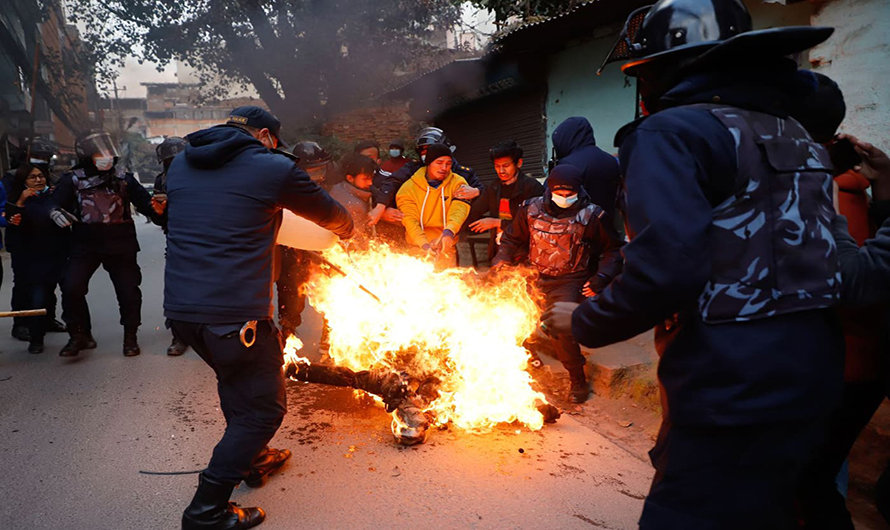 काठमाडौं – पेट्रोलियम पदार्थको मूल्यबृद्धिविरुद्ध नेत्रबिक्रम चन्द ‘विप्लव’ नेतृत्वको नेपाल कम्युनिष्ट पार्टीनिकट विद्यार्थी संगठन अखिल क्रान्तिकारीले बुधबार प्रधानमन्त्री शेरबहादुर देउवाको पुतला जलाएका छन्। विद्यार्थीहले चाबहिलस्थितल पशुपति क्याम्पसअगाडि प्रधानमन्त्री देउवाको पुतला जलाएका हुन्।