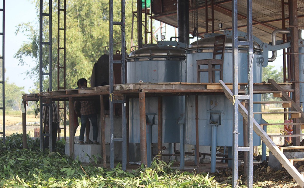 झापाको मेचीनगर–८ मा तेजपत्ताबाट तेल उत्पादन गर्ने कारखाना । प्रदेश १ सरकारको भूमि व्यवस्था, कृषि तथा सहकारी मन्त्रालयको ७२ लाख रुपैयाँ आर्थिक सहयोगमा प्रशोधन केन्द्र बनाई तेल उत्पादन सुरु गरिएको सहकारीका अध्यक्ष राजु दाहालले जानकारी दिए । ‘बाँकी ५० लाख जति सहकारीबाट लगानी गरेर कारखाना निर्माण गरेका हौं,’ उनले भने, ‘तेल उत्पादन धमाधम भइरहेको छ ।’दाहालका अनुसार तेजपत्ताको तेल उत्पादनका लागि भारतबाट मेसिन झिकाइएको छ । ‘भारतमा तेजपातबाट तेल उत्पादन गर्ने कारखानाहरू प्रभावकारी देखिए,’ उनले भने, ‘हामीले किन नगर्ने भनेर हात हाल्यौं ।’नेपालको महाभारत पर्वतीय शृंखलामा समुद्री सतहबाट एक सय मिटरदेखि २ हजार ५ सय मिटर उचाइमा तेजपत्ताको उत्पादन अत्यधिक पाइन्छ । बाहुनडाँगीका किसान अर्जुन कार्कीका अनुसार पछिल्लो समय झापामा समेत तेजपत्ताको उत्पादन बढेको छ । उनका अनुसार हरियो तेजपत्ता प्रतिक्विन्टल १ हजार ५ सय र सुक्खा तेजपत्ता प्रतिकिलो ४० रुपैयाँमा बिक्री भइरहेको छ । झापामा उत्पादित तेजपत्ता सस्तो मूल्यमा भारतीय व्यापारी समूहले किसानका बारीबाटै किनेर लैजाने गरेको छ ।