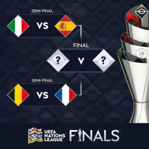 सप्तरी – यूईएफए नेसन्स लिग फुटबलको सेमिफाइनलको ‘ड्र’ सार्वजनिक भएको छ । बिहीवार युरोपियन फुटबलको सर्वोच्च निकाय यूईएफएले सेमिफाइनल ‘ड्र’ सार्वजनिक गरेको हो ।