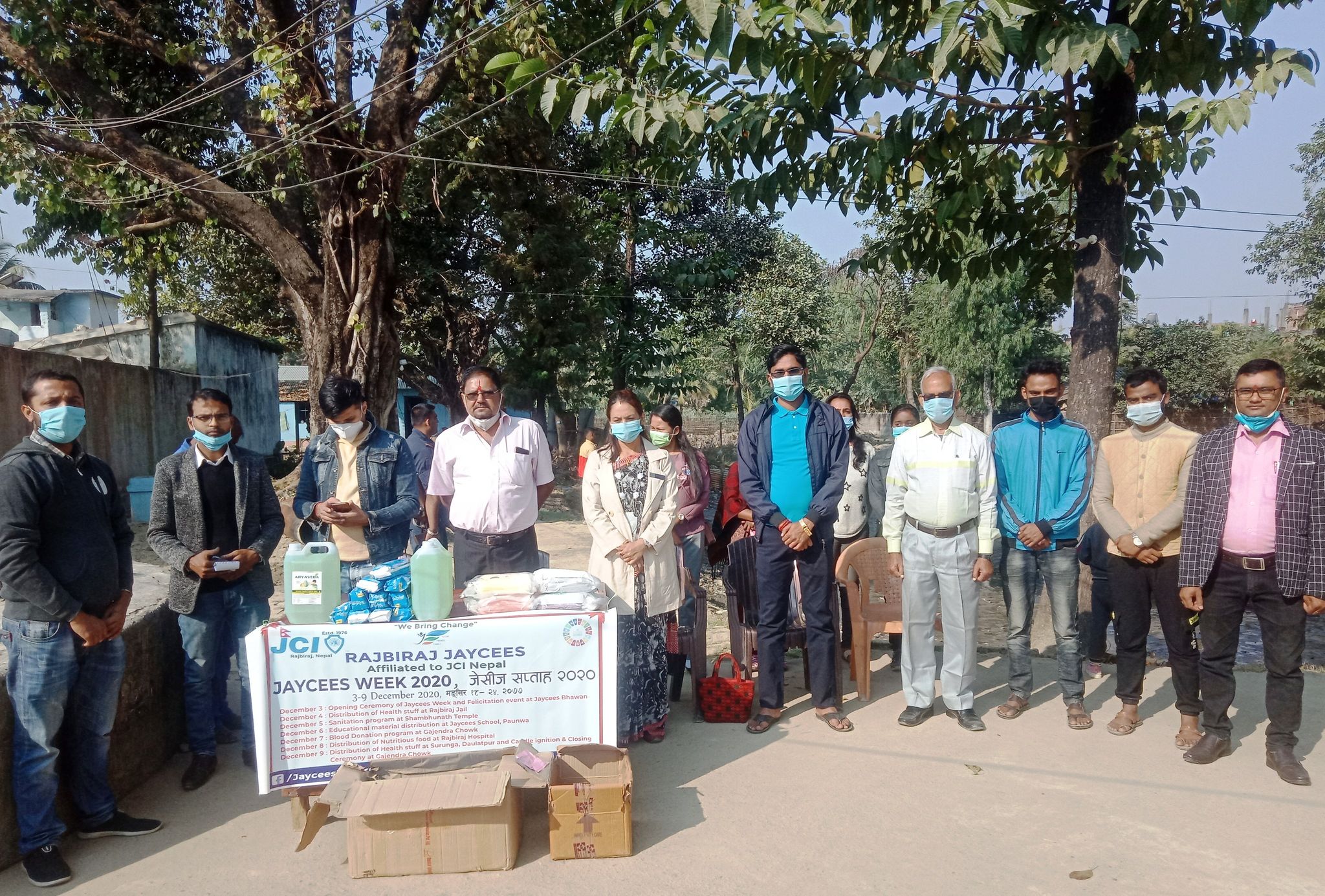 हस्तान्तरण गरिएको सामाग्रीमा १० लिटर सेनेटाइजर, चार कार्टुन मास्क र ४० पोका सेनेटरी प्याडलगायत रहेको कार्यक्रम संयोजक सिद्धार्थ तातेडले जानकारी दिनुभयो । महासचिव एवम् जेसीज सप्ताह मूल समारोह समितिका संयोजक खेलानन्द दासद्वारा सञ्चालिन कार्यक्रमका संयोजक तातेडले स्वागत गर्नुभयो । सामुहिक रुपमा राष्ट्रिय गानबाट सुरु भएको कार्यक्रममा उपाध्यक्ष मीना साहले आस्था पाठ गर्नुभयो ।