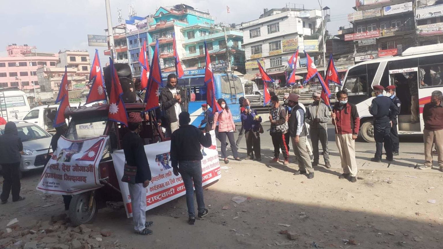 सप्तरी – पूर्व राजा ज्ञानेन्द्रले आज सार्वजनिक आह्वान गरेसङ्गै राष्ट्रवादी नागरिक समाजले मंसिर २६ गते राजधानीको रत्नपार्कमा विशाल जनप्रदर्शनको तयारी थालेको छ । त्यसैको सिलसिलामा आज दिउँसो समाजले काठमाडौंको कलंकीस्थित रुद्रबजार अगाडि प्रचार प्रसार भेला आयोजना गरेको थियो ।