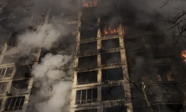 बिहानीपख किएभका विभिन्न स्थानमा विशाल विस्फोटका आवाज सुनिएका थिए । त्यसक्रममा १५ तल्ले एक भवनमा आक्रमण भएको हो ।