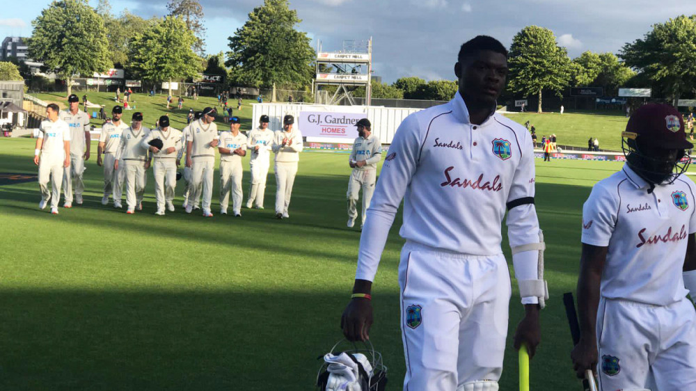 सेडन पार्कमा जेरेमी ब्ल्याकउड र अल्जारी जोसेफले केही सुदृढ प्रदर्श गरेपछि वेस्ट इन्डिजले हारलाई केही समय टारेको छ ।ब्ल्याकउड ८० रन बनाए भने जोसेफले ५९ रन बनाए, दुवै नटआउट छन् । वेस्ट इन्डिजले आफ्नो दोस्रो इनिङ्समा १ सय ९६ रन बनाएको छ । पाहुना टिम आफ्नो पहिलो इनिङ्समा १ सय ३८ रन बनाएर अलआउट भएपछि उसलाई फलो अन गर्न बाध्य भएको थियो ।यसअघि न्युजिल्यान्डले आफ्नो पहिले ब्याटिङ गर्दै सात विकेट गुमाएर ५ सय १९ बनाएर इनिङ्स समाप्तिको घोषणा गरेको थियो ।