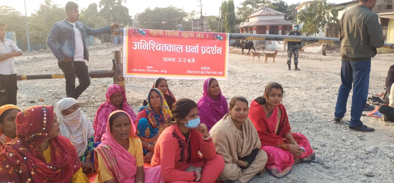 नेपाल-भारत खुल्ला सीमा संवाद समुहले भारतीय नाकासँग जोगिएको नेपाल क्षेत्रमा शनिबार अनिश्चितकालीन धर्ना सुरु गरेको हो । कोरोनाभाइरसको संक्रमण रोकथान गर्ने नाममा सरकारले भारतसँग रहेको धार्मिक, सांस्कृतिक र राजनीतिक सम्बन्धमा असर पार्न नाटकीय रुपमा सीमा शीललाई सुनयोजित रुपमा निरन्तरता दिएको भन्दै अनिश्चितकालीन धर्नामा बसेका संवाद समुहका केन्द्रीय संयोजक राजीव झाले जानकारी दिए ।