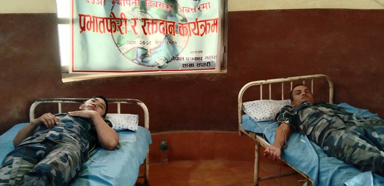 राजविराज – सप्तरीका पत्रकारहरूले राजविराजमा बुधबार रक्तदान गरेर महासंघको स्थापना दिवस मनाएको छ।