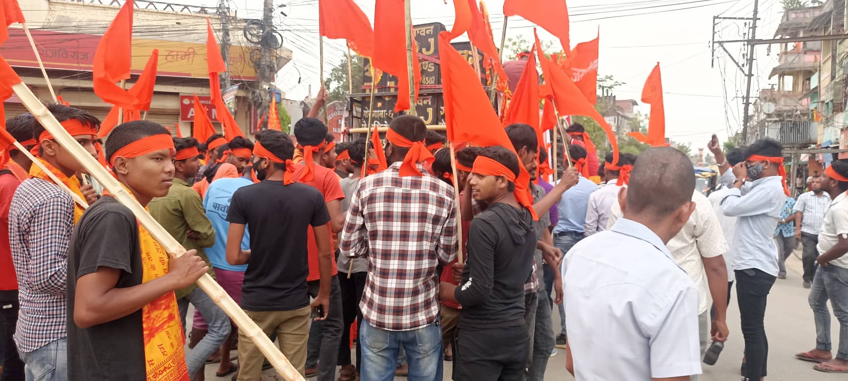 यता सप्तरीमा समेत युवा हरुले जय श्रीराम जय श्रीराम का मन्त्र गीत बाजा आजाका साथ् राजविराज परिक्रमा गरेका छन् ।